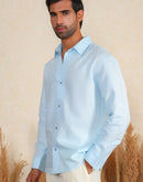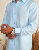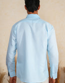 The Stillwater Shirt, made from breathable cotton in calm sky-blue, ensures all-day comfort. Perfect for casual outings or beach days, it pairs easily with jeans or shorts for a laid-back look.