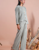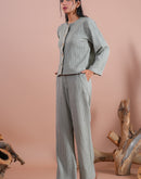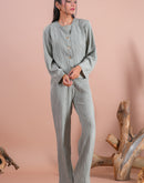 Soft cotton in a light grey-green, this relaxed set offers comfort and versatility. Perfect for casual or business casual wear, it pairs easily with any accessories.