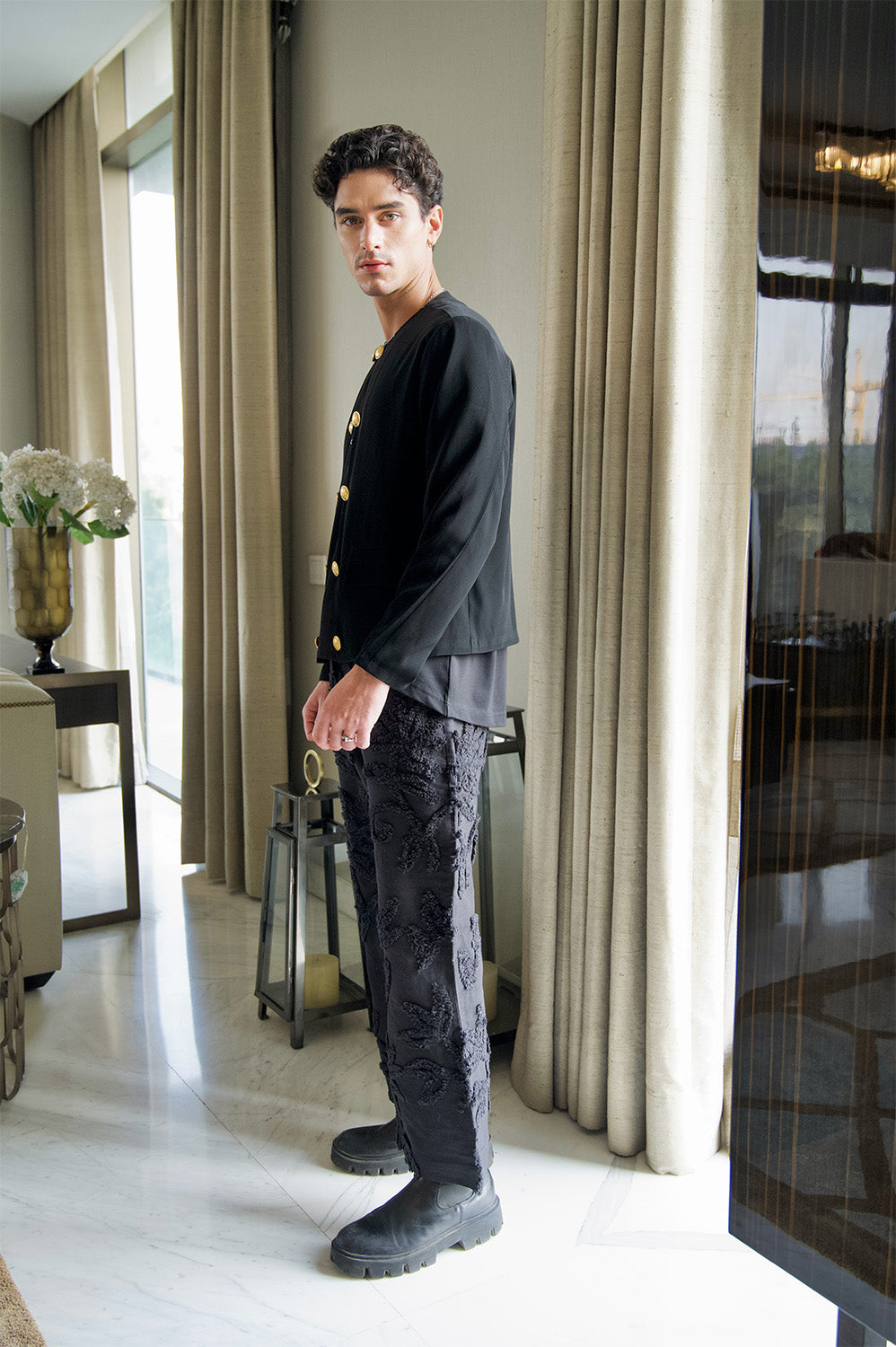 The Geometry shirt combines sharp style with effortless comfort. Its clean lines and modern design make it a versatile piece for any occasion.Crafted from smooth black micro crepe fabric, it offers a sleek, breathable fit that’...