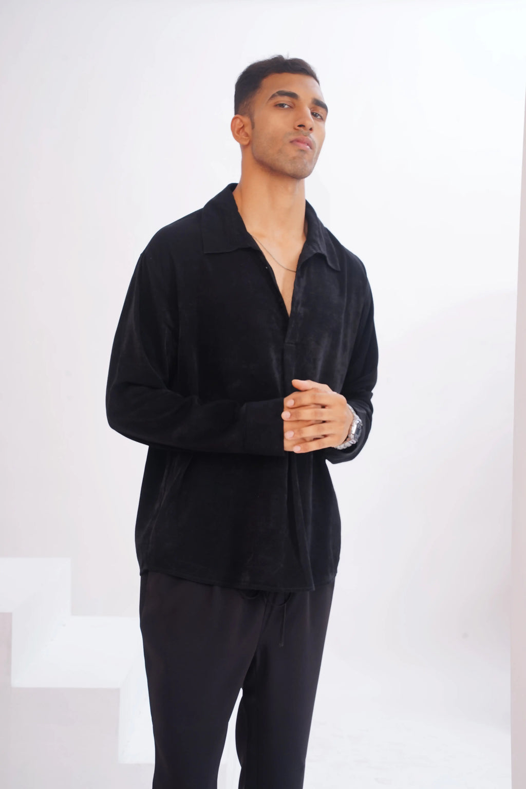 Elevate your wardrobe with the Panorama Shirt, crafted from an ultra-lightweight fabric that offers a stunning combination of matte and shiny finishes. Available in Blue and Black, this shirt features a relaxed fit with a deep ...