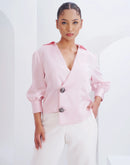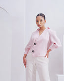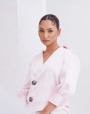 Introducing the Chic Canvas Top, a high-quality garment that exudes creativity and sophistication. This top, available in a soft pink hue, features a unique double-button design and voluminous sleeves that add a touch of elegance to any outfit. The V-neckline and tailored fit provide a flattering silhouette, while the luxurious fabric ensures comfort and style. Perfect for making a statement, the Chic Canvas Top can be paired with various bottoms to create a chic and polished look