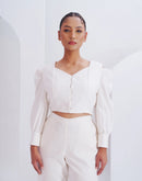 A sophisticated top crafted from luxurious fabric, featuring exquisite tailoring and unique design elements. This top is available in two classic colors: black and white, ensuring versatility and elegance for...