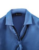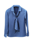 Introducing the Azure Charm Top, a stunning addition to any wardrobe. This top, available in a beautiful blue hue, features a chic tie detail at the neckline that adds a touch of sophistication. Crafted from luxurious fabric, the Azure Charm Top offers both comfort and a polished look. This versatile top can effortlessly elevate any ensemble, making it a must-have for your collection.