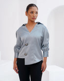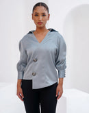 Introducing the Chic Canvas Top, a high-quality garment that exudes creativity and sophistication. This top, available in a soft pink hue, features a unique double-button design and voluminous sleeves that add a touch of elegance to any outfit. The V-neckline and tailored fit provide a flattering silhouette, while the luxurious fabric ensures comfort and style. Perfect for making a statement, the Chic Canvas Top can be paired with various bottoms to create a chic and polished look