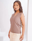 Elevate your wardrobe with The Magnolia Top. This top features a flattering V-neckline with elegant pleated details, adding a touch of sophistication to any outfit. The sleeveless design ensures comfort and versatility, making it a perfect choice for any occasion.