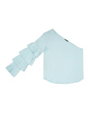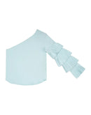 Step into the spotlight with the Ruffled Enchantment Top, a stunning one-shoulder piece that combines modern flair with classic sophistication. This top features a unique tiered ruffle sleeve, adding a touch of drama and elegance to your ensemble. Crafted from high-quality fabric, it’s designed to make you feel confident and chic at any event. Available in a deep maroon hue, this top is perfect for those who want to make a bold fashion statement.