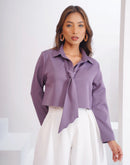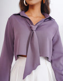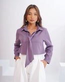 Introducing the Versatile Tie Top, a chic and adaptable piece available in elegant Purple and classic Navy. This short-length top is designed with a unique tie feature that can be styled in multiple ways, allowing you to customize your look effortlessly. Crafted from high-quality fabric, the Versatile Tie Top offers a comfortable fit while exuding sophistication. Its tailored collar and clean lines make it a stylish addition to your wardrobe. Pair it with high-waisted trousers or a skirt to create a polished and fashionable ensemble.
