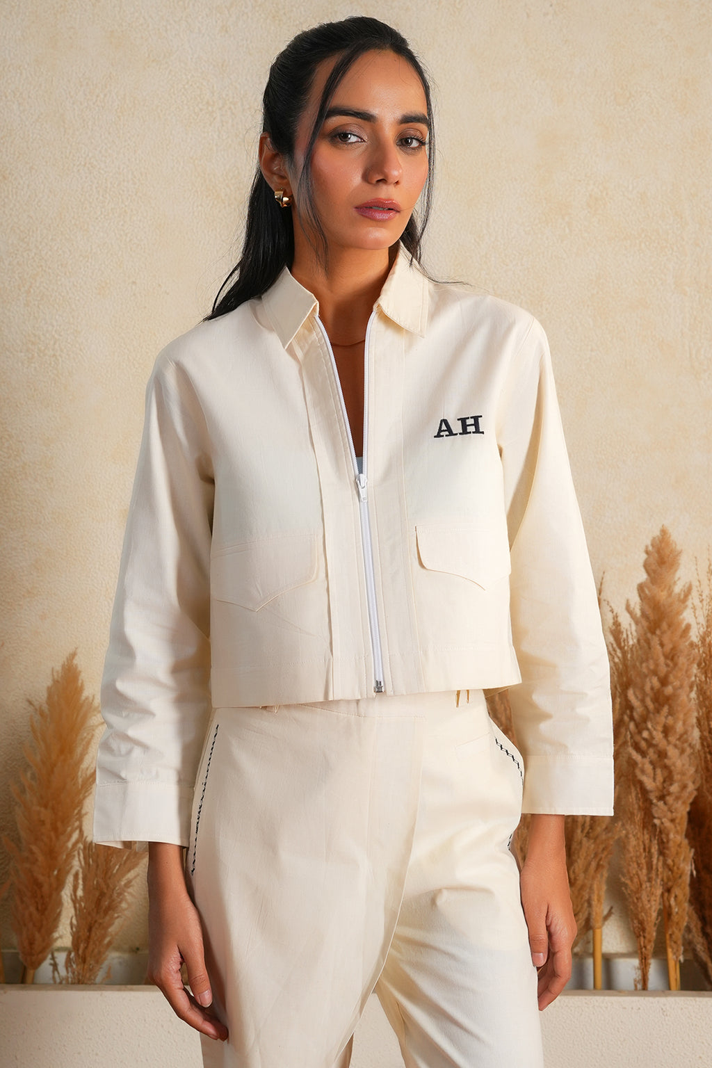 In a serene ivory shade, this cotton cord set blends breathable comfort with understated style. Perfect for travel or daytime outings, its clean lines and soft drape add quiet elegance
