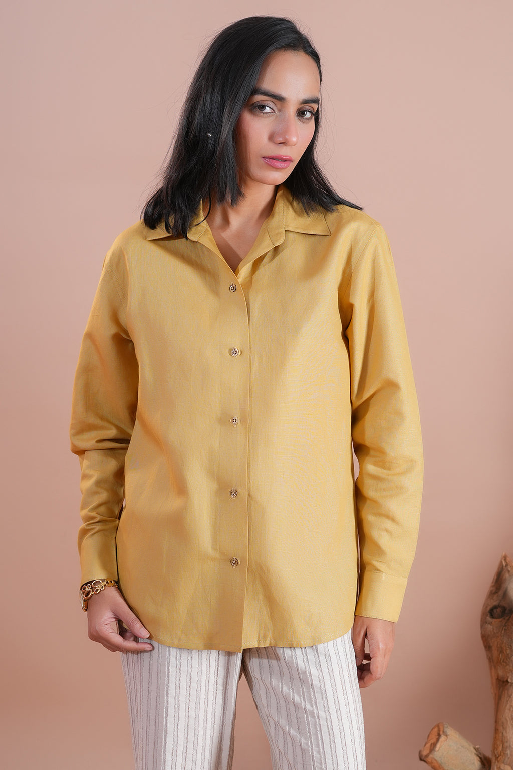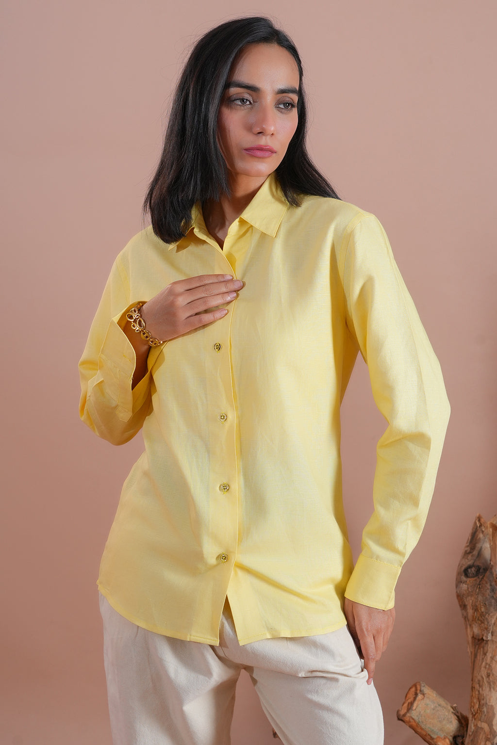 The Lemon Butter Shirt, crafted from soft linen in a mellow yellow, offers reliable comfort and a laid-back yet polished look. Ideal for casual outings or weekend plans.