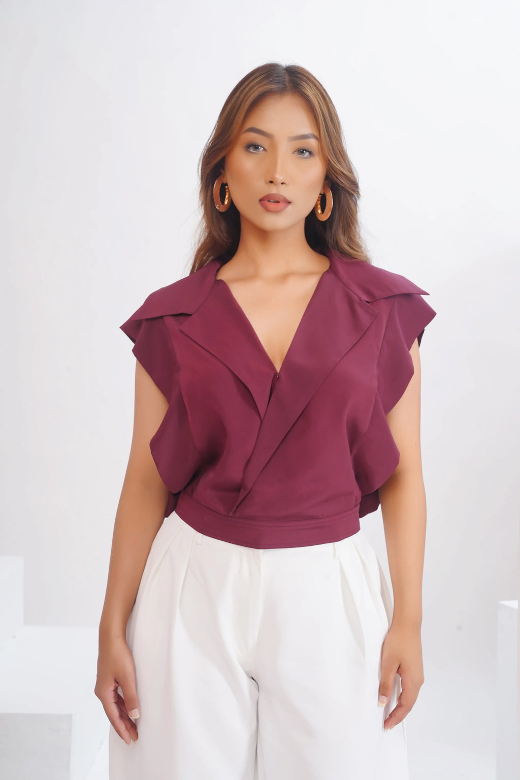Step into a realm of contemporary elegance with The Elysian Top. This striking piece features a unique design that blends modern aesthetics with timeless sophistication. The structured silhouette and bold details make it a stan...
