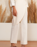 Tailored for a sleek fit, these pants offer a draped layer for added movement and style. Made from breathable fabric, they provide all-day comfort. Ideal for both casual and evening wear.