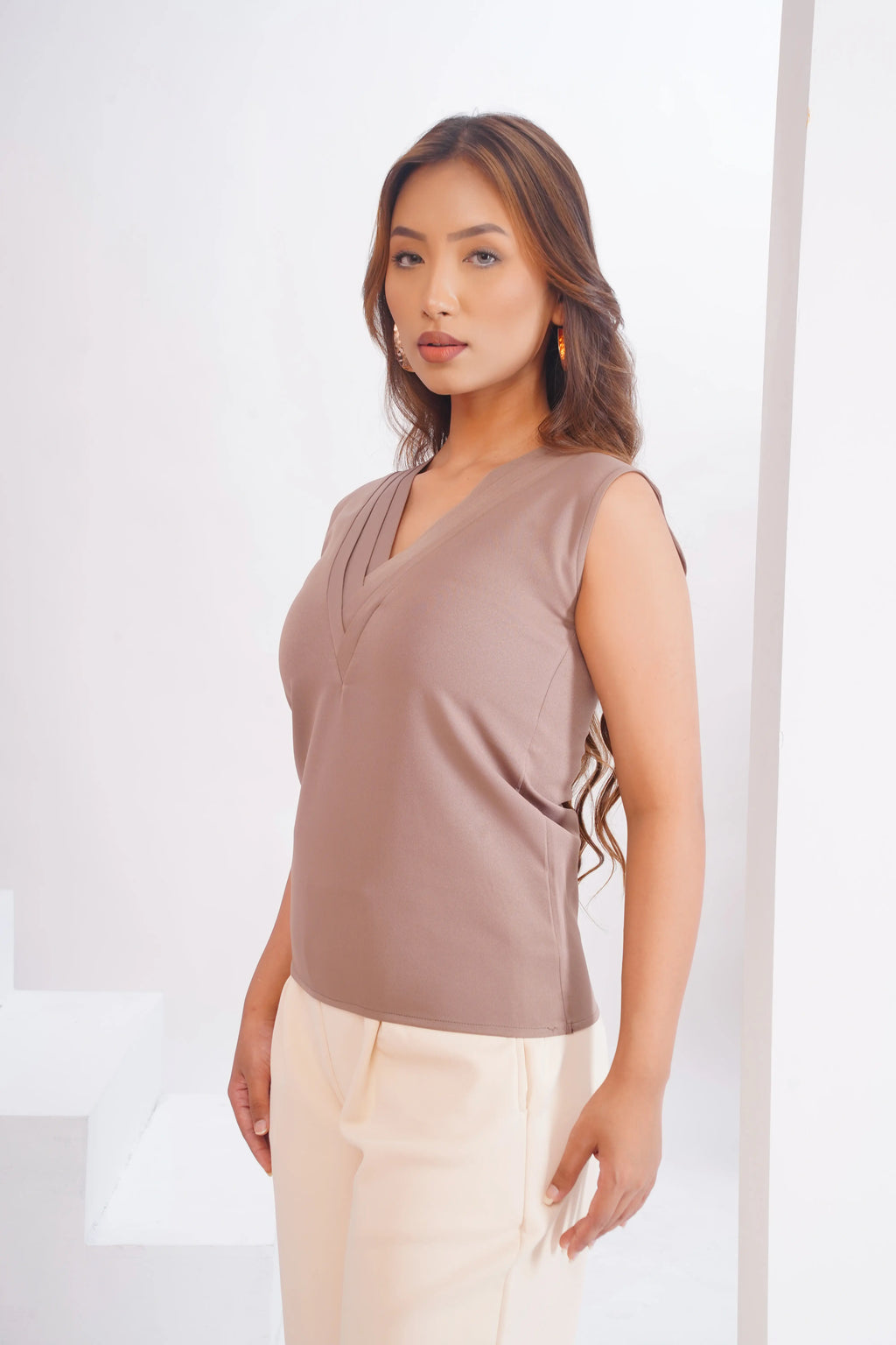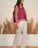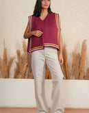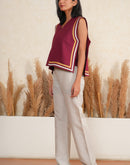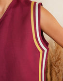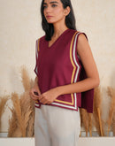 This deep maroon sleeveless top offers breathable comfort with a relaxed fit and handcrafted woven trim. Perfect for casual outings or weekend get-togethers. Versatile and effortless for warm-weather style.  ...